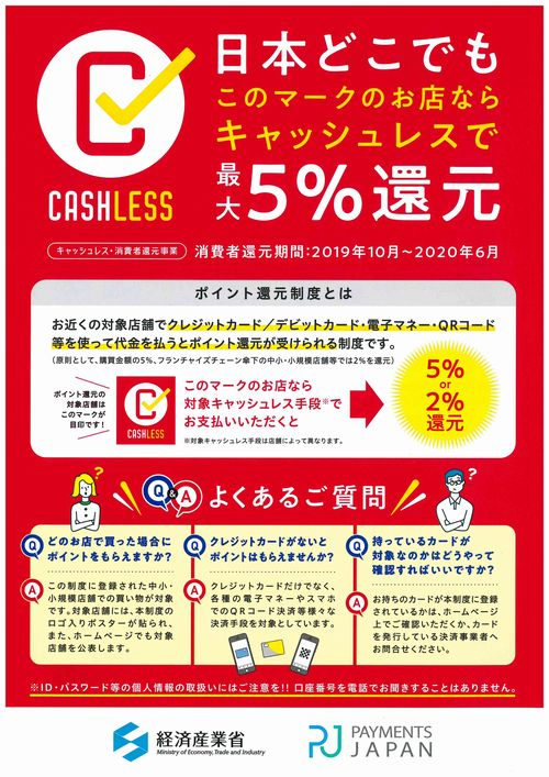 キャッシュレス・消費者還元制度に「認可」されました(5%)
