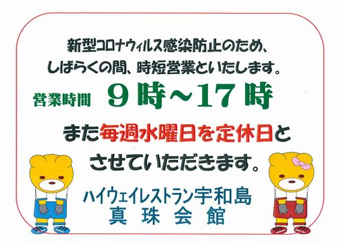 新型コロナウィルス感染防止のため、9時から17時の時短営業とし、